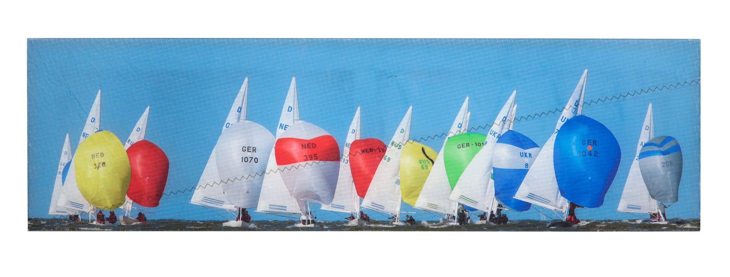 Tu foto favorita impresa en una vela ganadora. Tamaño estándar 60/90 cm en una vela usada de Dacron. Consigue tu propio Trofeo personal, ¡envía tus velas viejas! ¿Quieres diseñar tu propia impresión? Añade esta impresión a la cesta de la compra y haz el pedido. El precio es por los derechos de autor exclusivos de tu imagen. Nos pondremos en contacto contigo para personalizar tu impresión.