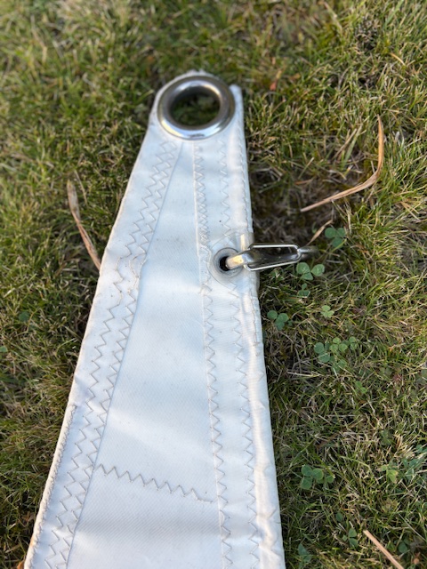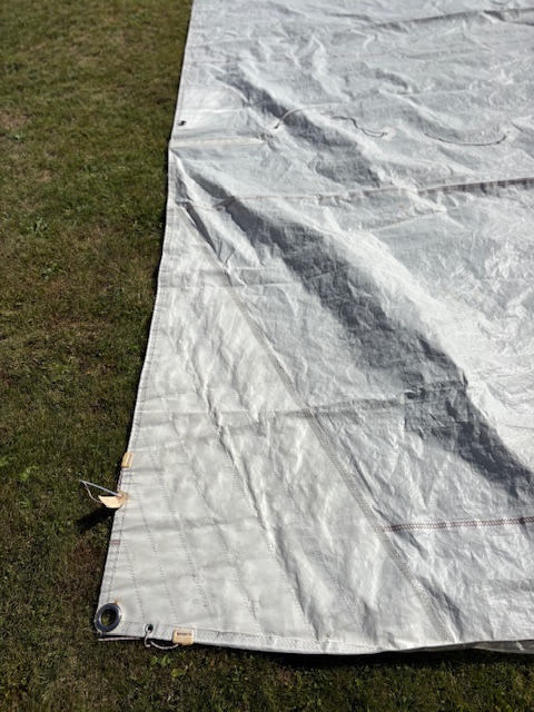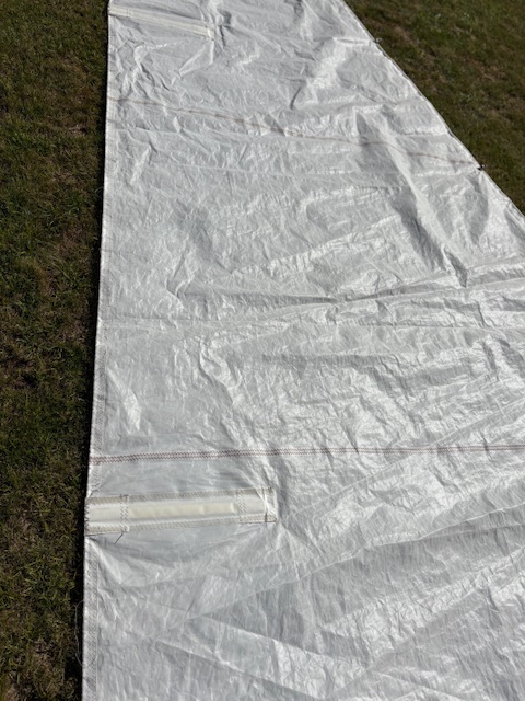 Foque de dacrón de buena calidad con madejas con 1 rizo a 1,6 m por encima del pie; pequeños sables horizontales en la baluma; viene con funda de vela; ex barco de 34-37 pies