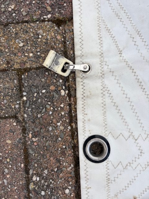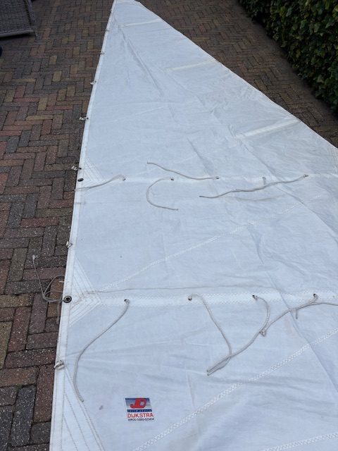 Vela mayor de dacrón de buena calidad con 2 rizos, sables parciales (incluidos); ex Felucca Kornati 606