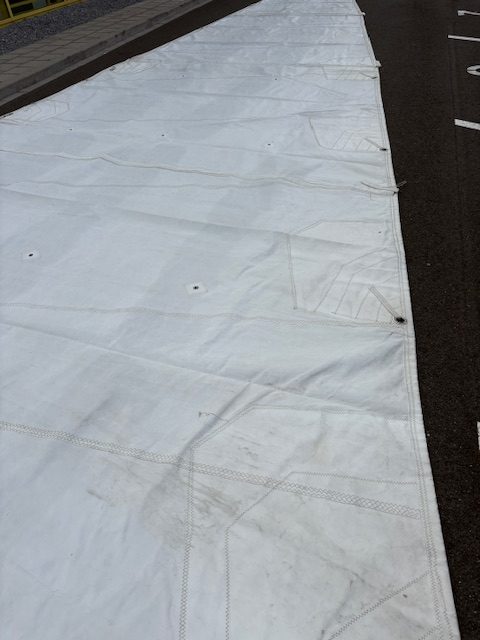 Vela mayor de dacrón de buena calidad; 3 rizos / Sable completo / Pie suelto; sables y carros de sables no incluidos; ex Ovni 435