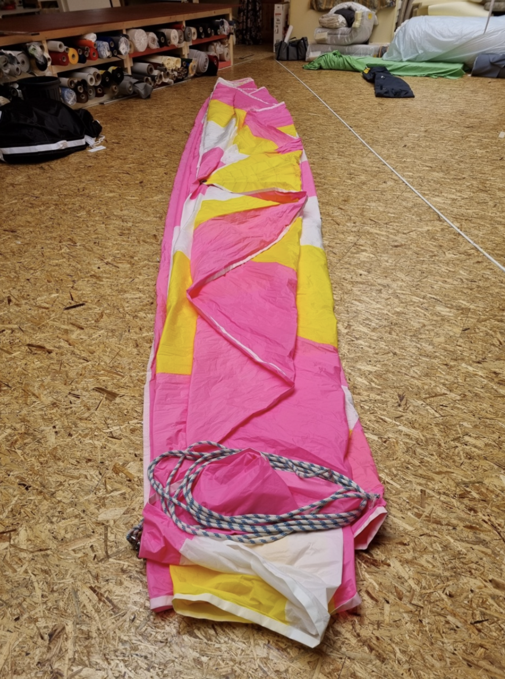 Spinnaker triradial à vent léger en rose/jaune/blanc ; Tissu : Fibermax 65g/m².