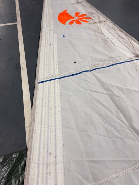 Goede Dacron rolfok die een wasbeurt nodig heeft; natuurlijk UV; schuim en 5mm voorlijktape; ex Hanse 411