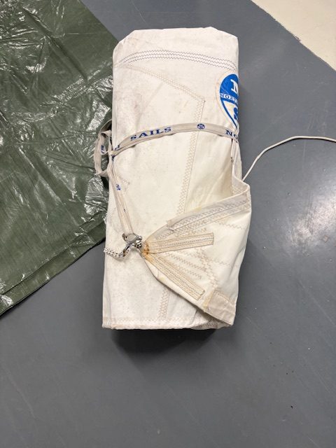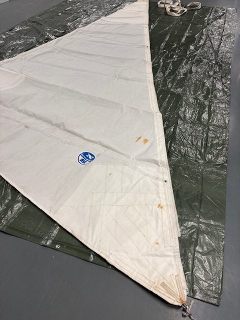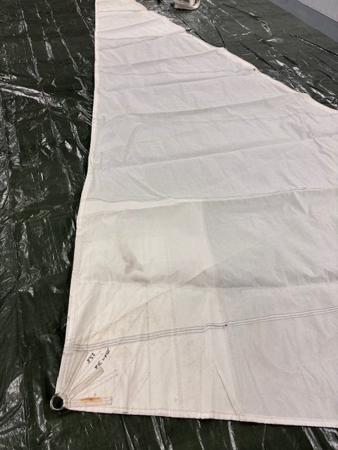 Dacron Heavy / Stormjib met 4mm EN 6mm voorlijktape ex X35; zeer beperkt gebruikt; enkele roestplekken; voorlijktape is verlengd met 7m tot totaal 13,8m (kan worden aangepast)