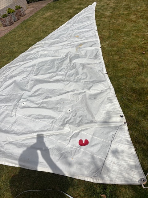 Dacron Genoa with hanks and 1 reef 70cm above the tack, some small spots
