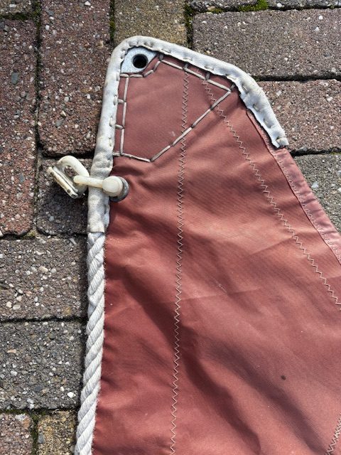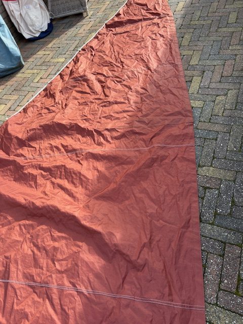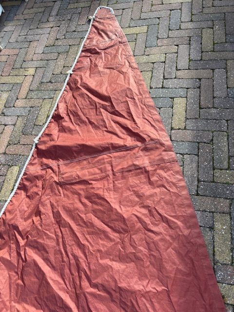 Very good quality Tanbark Dacron Mainsail with 1 reef, 4 (partial) battens; comes with sailbag; has been used very little