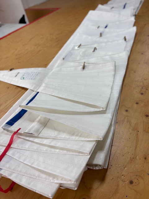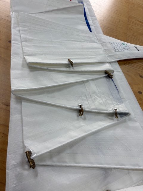 New Laminate (Palma tri Radial PE) Jib with hanks, 2 short battens Full Top Batten; 1 reef 1.1m above the tack; we can change the sail to luff tape.