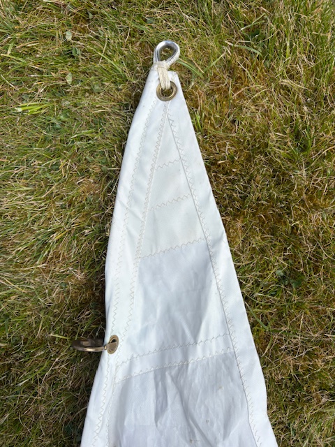 As New / Never used Dacron Jib with hanks and stainless wire in the luff; ex Waarschip 725