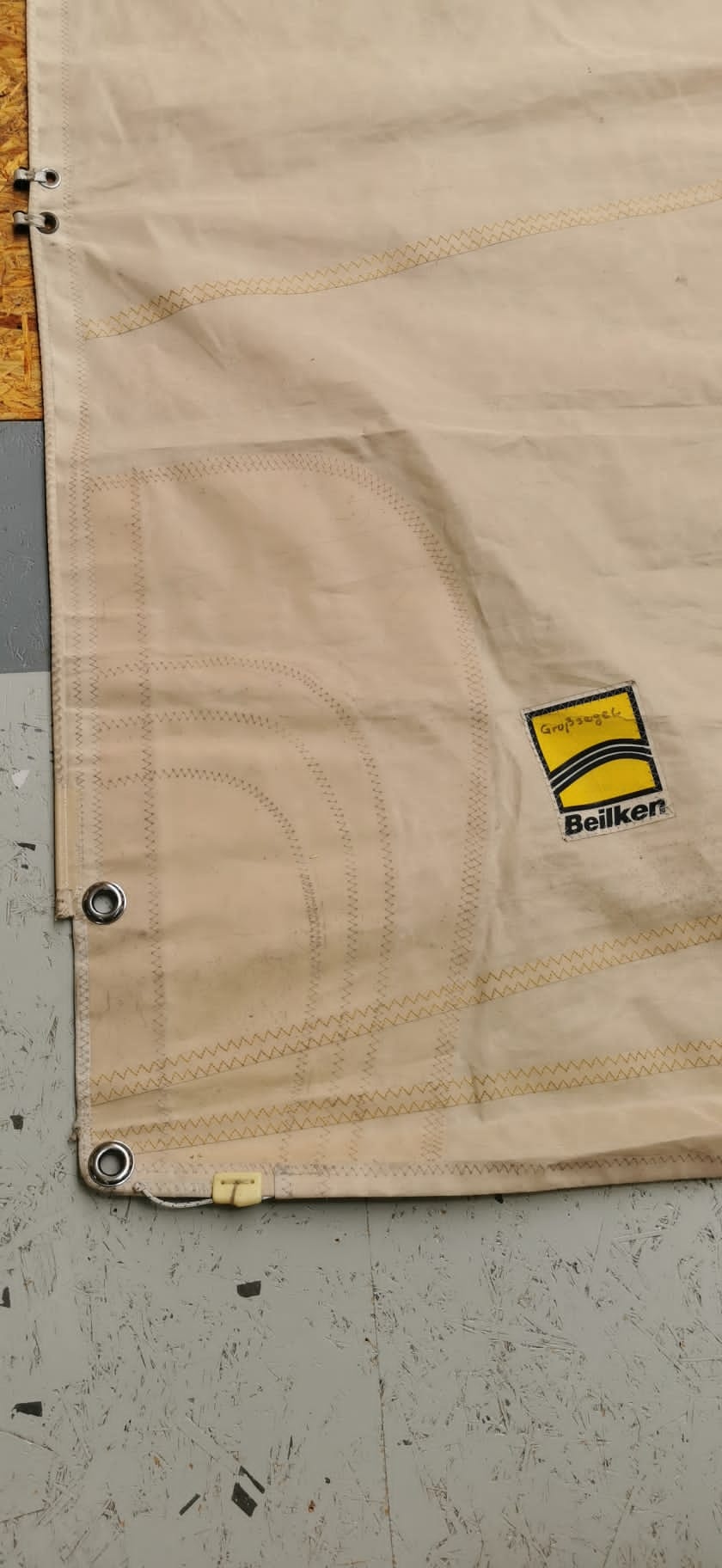 USED Mainsail / 2 reefs / cross-cut Dacron beige Battens: Horizontal