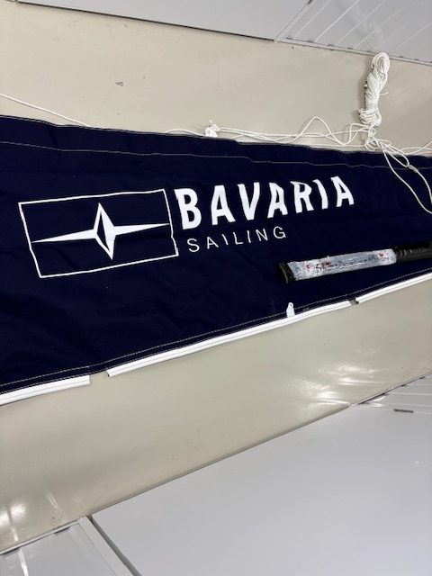 NEW Navy Maindrop with zipper; 5.25m / 5.6m with part in front of the mast; Bavaria logo; 90cm high at the mast; 40cm at the rear; with ropes