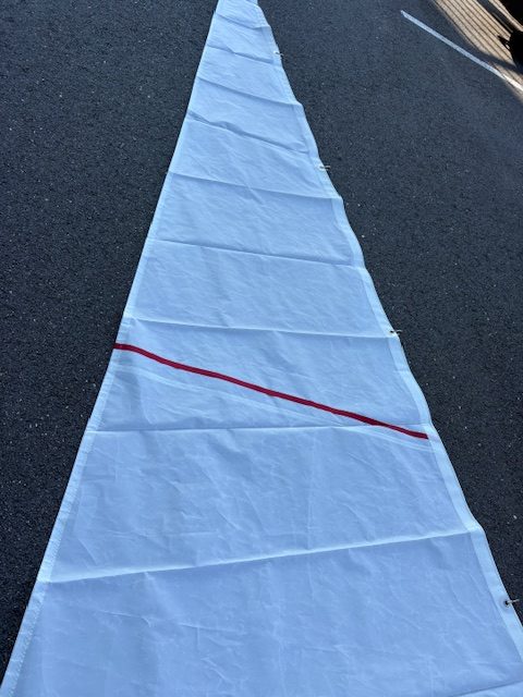NEW Dacron Jib with hanks; red trimstripe; comes with sailbag