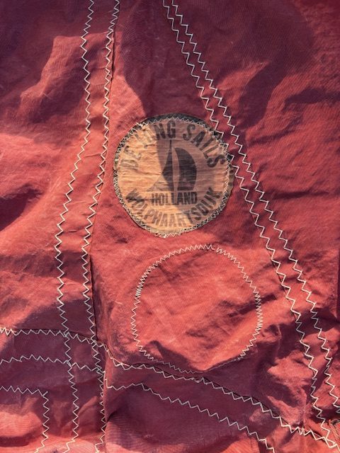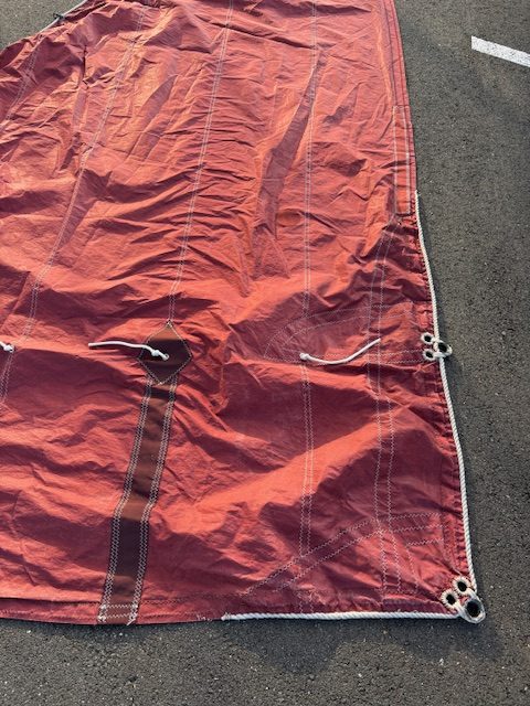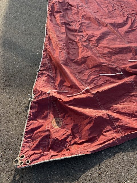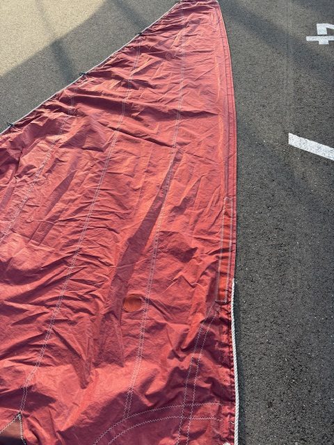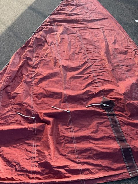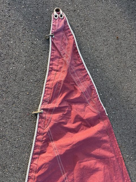 Very Good Quality Tanbark Jib with hanks, 1 reef 60cm above the tack; originally for a traditional sloop